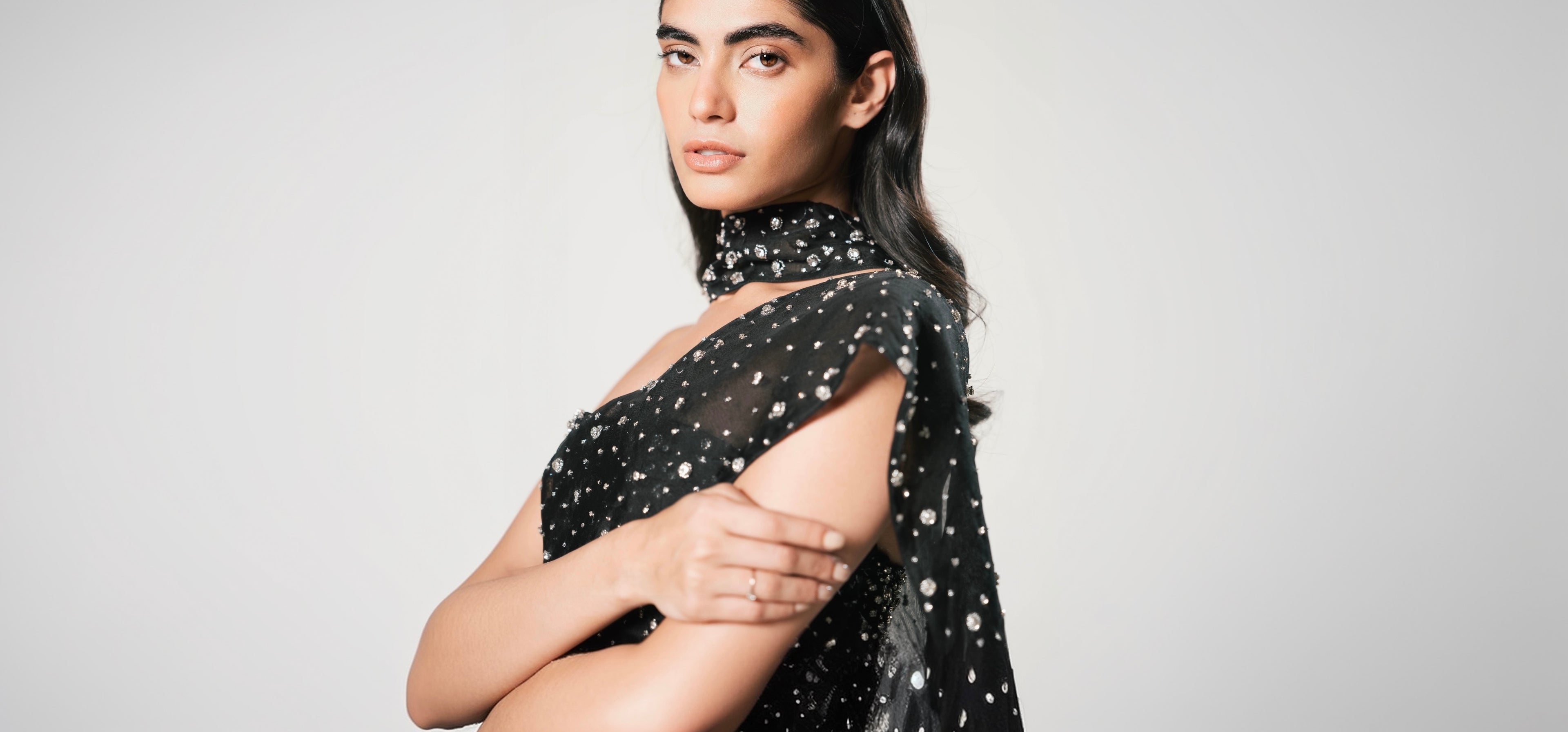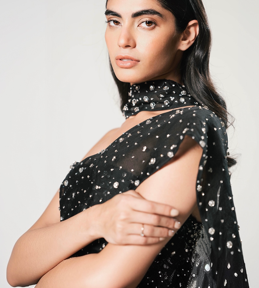 Immerse yourself in the allure of The Inayah Set in Midnight Black—a masterfully draped silhouette...
