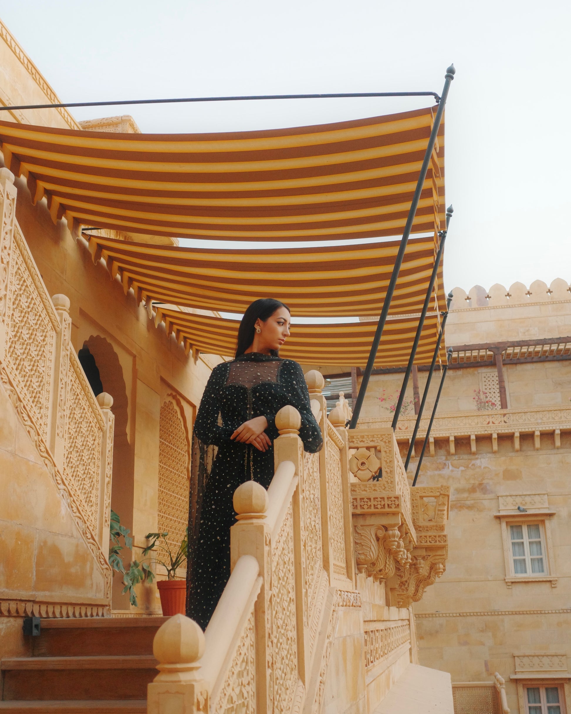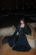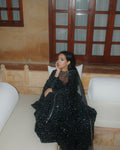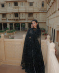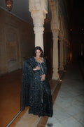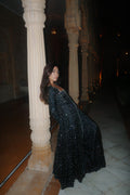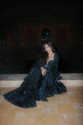 Mirroring the grandeur of a starry night, The Nikita Peshwas in Midnight Black evokes a celestial kind of elegance—luminous and unforgettable. Crafted in pure silk organza and embroidered over 320 hours, this ensemble merges the majesty of Central Asian silhouettes with the quiet glamour of modern eveningwear.