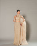 Discover the unparalleled sophistication of the Hannan Gown, a cream-gold masterpiece that redefines classic elegance. This gown is distinguished by its refined neckline, where delicate folds of organza cascade effortlessly against the collar, creating an aura of ethereal grace. Crafted with double layers of organza, the gown achieves a sublime translucency that captures light and enhances its celestial charm.